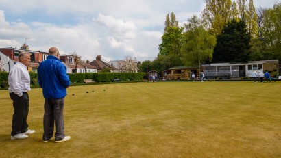 Ken and Ron having a chat between ends, probably discussing how well Ted has tended the green.