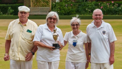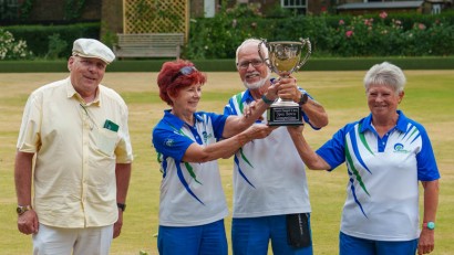 The tenth running of the Francis Chappell Open Triples Tournament. Twelve teams battled it out over the course of a day, three games before a well-deserved lunch break and then another two before the top two teams then played a final game. Eagerly supported by the gathered spectators oohing and aahing and dreaming of what could have been. For the third year in a row, top honours go to Woodcroft Bowls Club who edged out Duke of Kent Court Bowls Club in a thrilling final.