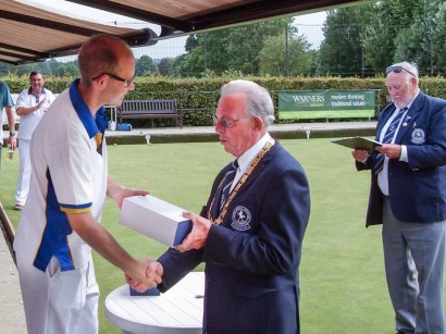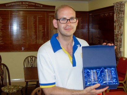 David Singer has become the second player in 2 years to earn his Kent Badge. Despite working full time David went all out to get his badge this year after coming so close last season. He reached the Divisional Semi-Finals of the County Competitions in the pairs (with Ken Shooter), triples (with Ken and Rob Warnes) and the unbadged Singles. However it was in the main Singles Competition open to both badged and unbadged players that he won the Divisional Final to qualify for his Kent badge.